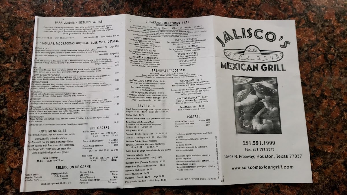 Welcome to Jalisco's Mexican Grill, a delightful culinary destination nestled in Houston, TX! This vibrant eatery offers an authentic taste of Mexican cuisine, perfect for both casual diners and special occasions. The menu showcases an array of mouthwatering options that cater to diverse palates.